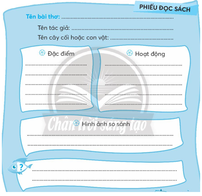 Em tìm hiểu kĩ một bài thơ về chủ đề cây cối hoặc con vật để viết vào Phiếu đọc sách cho phù hợp.
