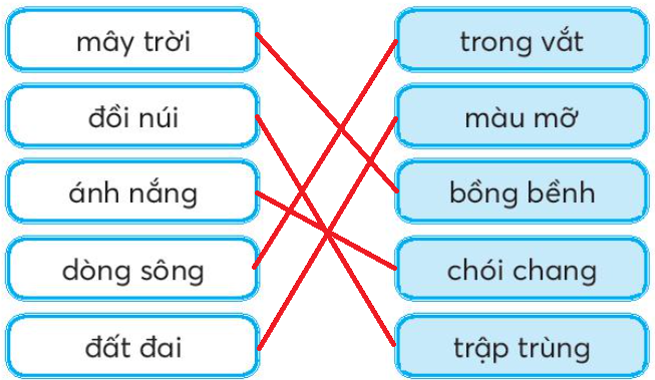 Em đọc kĩ sau đó nối từ ngữ chỉ sự vật tương ứng với từ ngữ chỉ đặc điểm của nó.