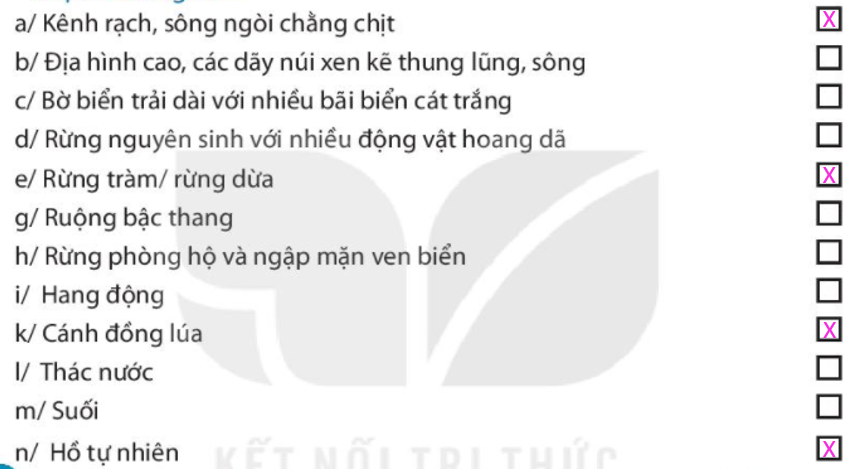 Đánh dấu X vào ô tương ứng với những phong cảnh thiên nhiên có ở quê hương em.