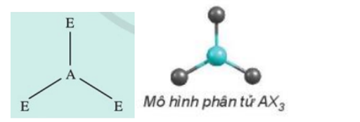 Xung quanh nguyên tử trung tâm có 3 đám mây electron hóa trị E, chiếm ba khu vực điện tích âm đẩy nhau, nên góc hóa trị lớn nhất là 120o. Ba đám mây E được phân bố trên mặt phẳng hướng về ba đỉnh của tam giác.