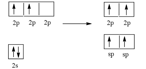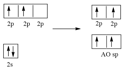 1 AO 2s tổ hợp với 2 AO 2p tạo 3 AO lai hóa 2p2