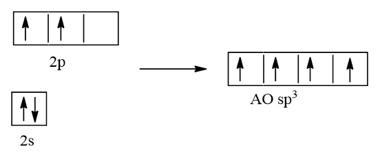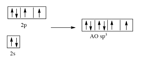 1 AO 2s tổ hợp với 3 AO 2p tạo 4 AO lai hóa sp3