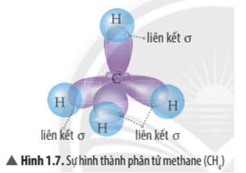 4 AO lai hóa sp3 của nguyên tử C xen phủ với 4 AO s của nguyên tử H tạo thành 4 liên kết σ hướng về 4 đỉnh của một tứ diện đều.