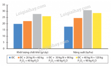 Quan sát hình 1.3, cho biết khi tăng hàm lượng phân bón có làm tăng sinh trưởng và năng suất cây lạc không? Bón phân đúng hàm lượng là gì?