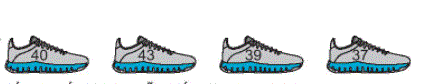 Các số ghi trên chiếc giày theo thứ tự từ lớn đến bé là: 43. 40, 39, 37