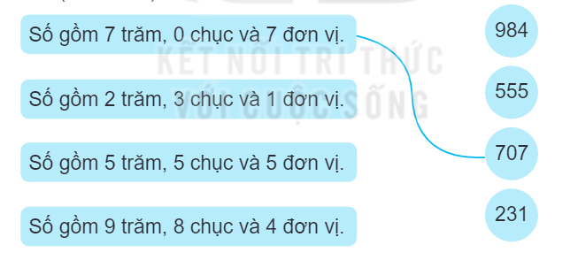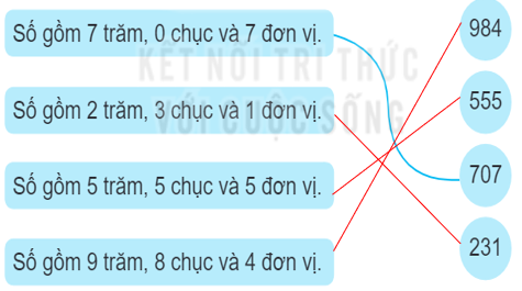 Nối mỗi số với số trăm, chục, đơn vị thích hợp.