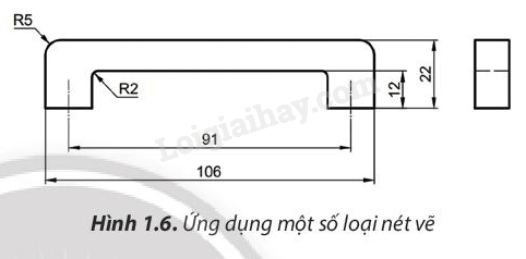 Dựa vào hình 1.6 và bảng 1.2 để xác định các loại nét vẽ và ý nghĩa của chúng