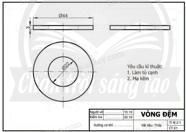 - Đây là bản vẽ kĩ thuật chi tiết Vòng đệm