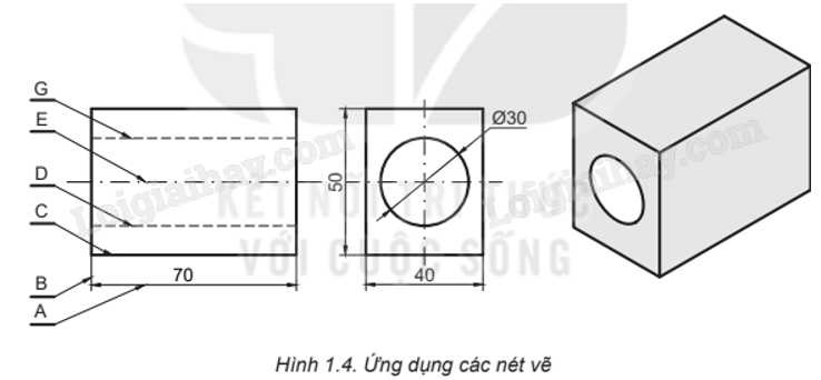 Trên Hình 1.6, người ta sử dụng các tiêu chuẩn về: tỉ lệ, nét vẽ, ghi kích thước.