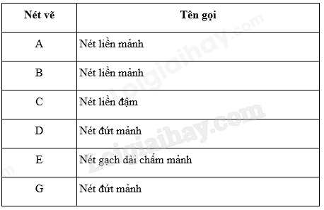Tên gọi của các nét vẽ được sử dụng trong Hình 1.4: