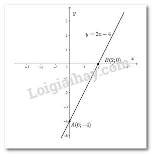 b) Cho \(x = 0 \Rightarrow y = - 4\) ta được điểm \(A\left( {0; - 4} \right)\) trên trục \(Oy\).