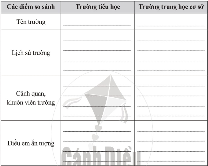 So sánh trường trung học cơ sở em học với trường tiểu học trước đây của em.