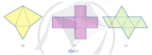 Các miếng bìa ở hình 9a có thể gấp lại thành hình chóp tam giác đều.