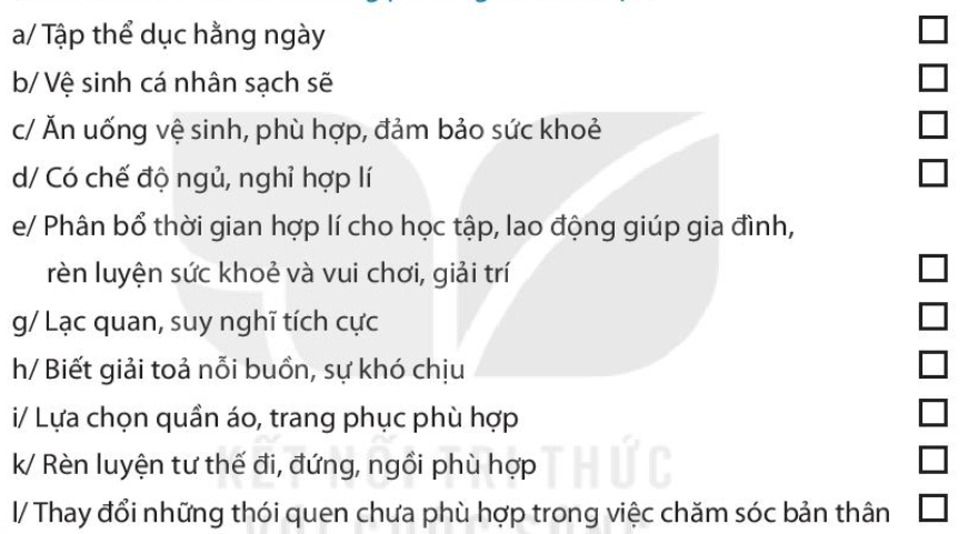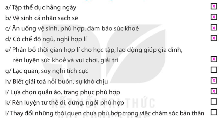 Em đã làm được những việc gì để tự chăm sóc bản thân?