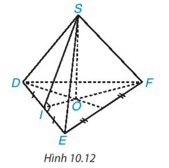 Gọi tên đỉnh, cạnh bên, mặt bên, mặt đáy, đường cao và một trung đoạn của hình chóp tam giác giác đều trong Hình 10.12
