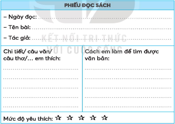 Em tự tìm đọc bài đọc và tự liên hệ bản thân để hoàn thành phiếu đọc sách.