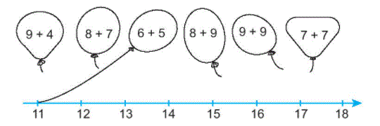 8 + 9 = 17 9 + 9 = 18 7 + 7 = 14