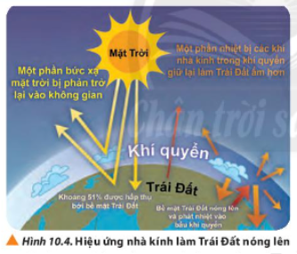 Tìm hiểu để mô tả và giải thích sơ lược tác động của hiệu ứng nhà kính đến sự nóng lên toàn cầu (Hình 10.4)