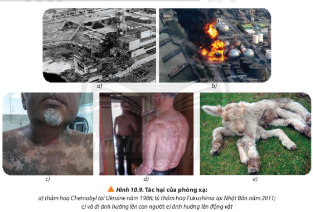 Một số tác hại của phóng xạ ở Hình 10.9: