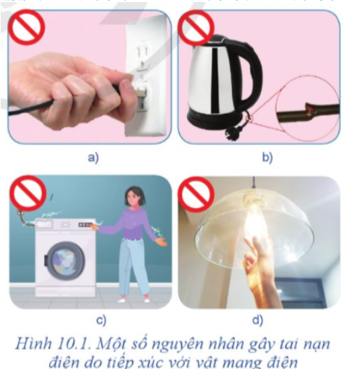 Dựa vào hình 10.1 để nêu các nguyên nhân gây ra tai nạn điện