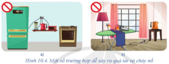 Dựa vào hình 10.4 để nêu những nguy hiểm xảy ra trong hình.