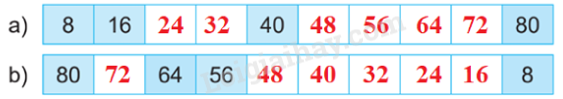 Đếm thêm 8 đơn vị hoặc đếm lùi 8 đơn vị rồi điền số còn thiếu vào ô trống.