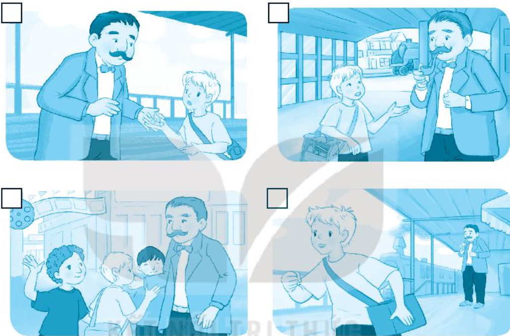 Sắp xếp các tranh dưới đây theo đúng trình tự của câu chuyện Cậu bé đánh giày.