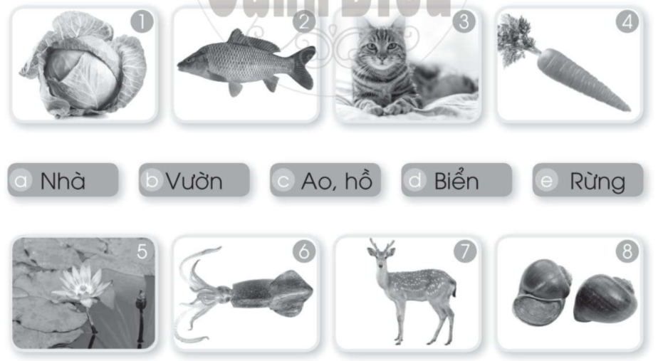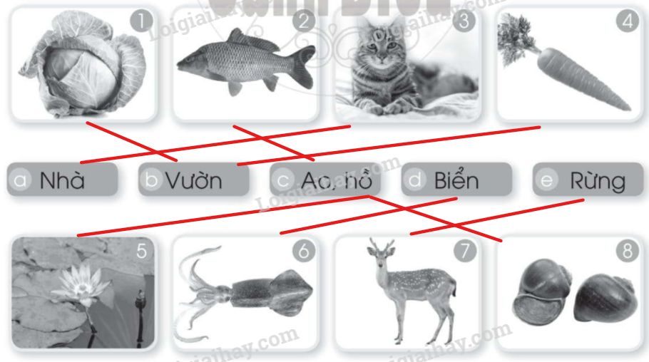 Nối hình cây, con vật với nơi sống của nó cho phù hợp