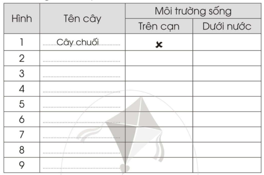 Quan sát các hình trang 62, 63 trong SGK và hoàn thành bảng dưới đây.
