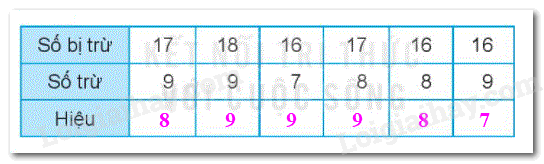 16 – 7 = .... 17 – 8 = .... 18 -9 = ....