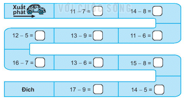 Tính nhẩm kết quả các phép trừ rồi điền số thích hợp vào các ô trống.