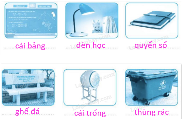 Em quan sát các hình và viết tên đồ vật tương ứng dưới mỗi hình.