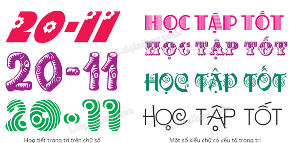 - Hình tượng, họa tiết nào được sử dụng trong mẫu chữ?