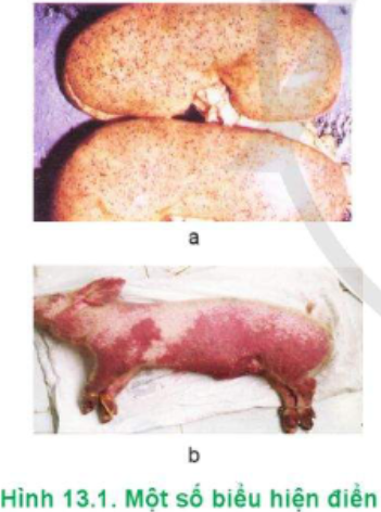 Hãy chọn biểu hiện đặc trưng của bệnh dịch tả lợn cổ điển để đặt tên cho các ảnh trong Hình 13.1