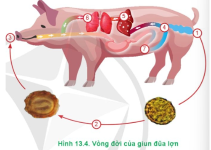 Quan sát hình 13.4 và mô tả vòng đời của giun đũa lợn