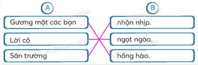 Nối từ ngữ ở cột A với từ ngữ ở cột B để tạo câu nêu đặc điểm.