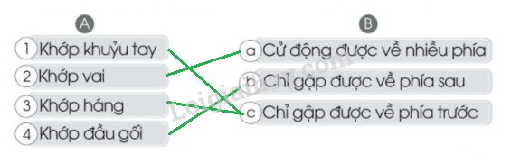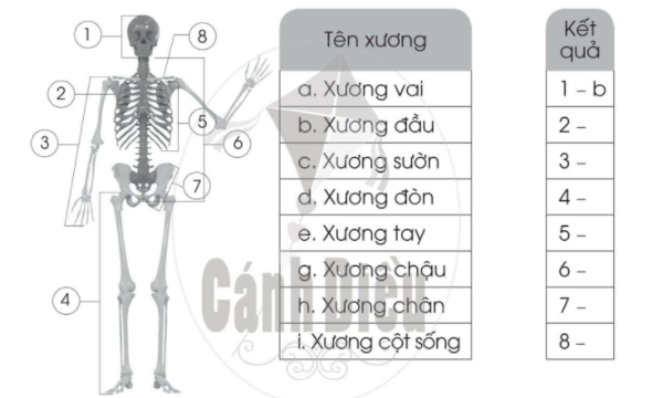 a) Ghép số và chữ cái cho phù hợp theo mẫu.b) Viết tên các khớp xương vào ô trống trong hình bên cho phù hợp.