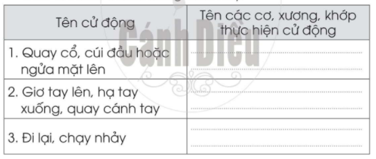 Tên các cơ, xương, khớp thực hiện cử động |