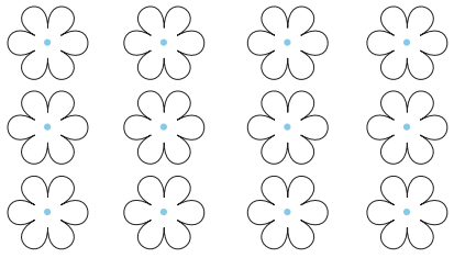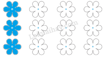 $\frac{1}{4}$ số bông hoa là 3 bông hoa.