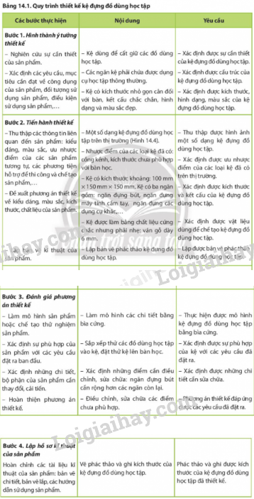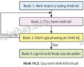 Dựa vào hình 14.3 quy trình thiết kế kĩ thuật