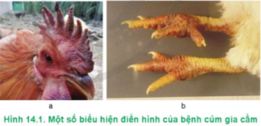 Hãy chọn biểu hiện đặc trưng thích hợp của bệnh cúm gia cầm để đặt tên cho các ảnh trong hình 14.1