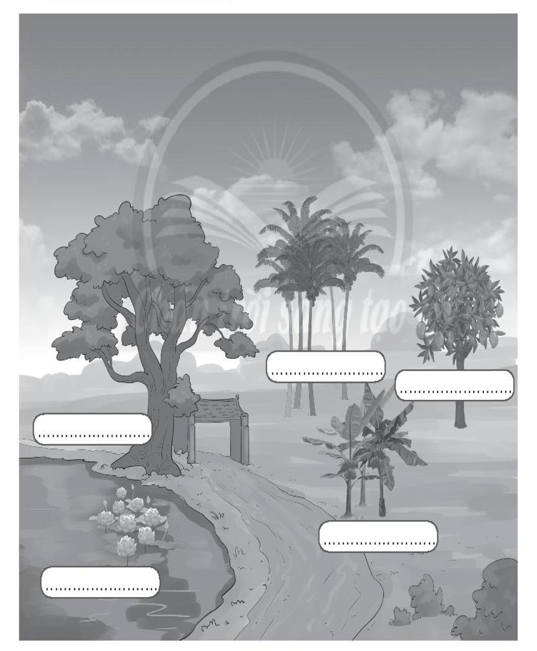 Viết vào chỗ (…) tên các loại cây được trồng hai bên đường dẫn vào nhà bạn nam.