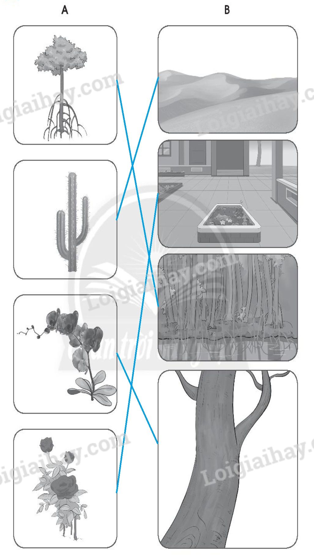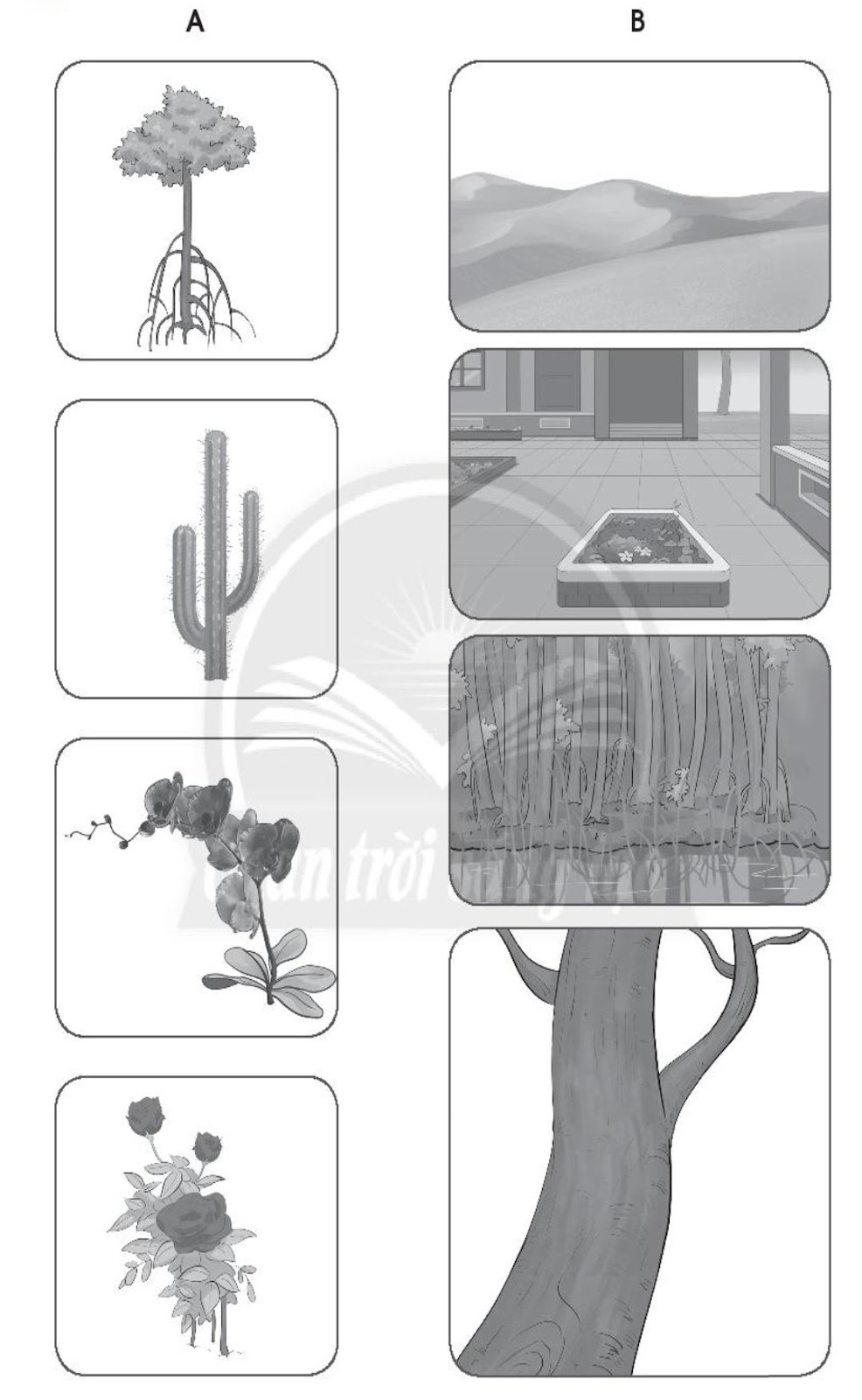 Nối hình ở cột A với hình phù hợp ở cột B.