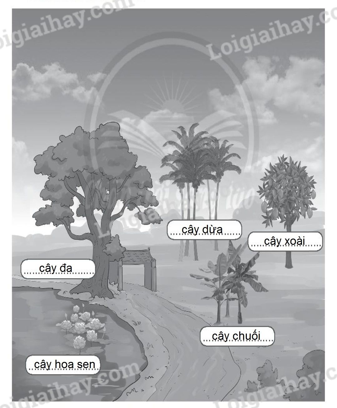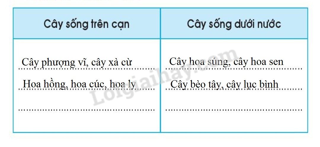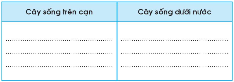 Quan sát các loài cây xung quanh em và viết tên cây vào chỗ (…) ở cột phù hợp.