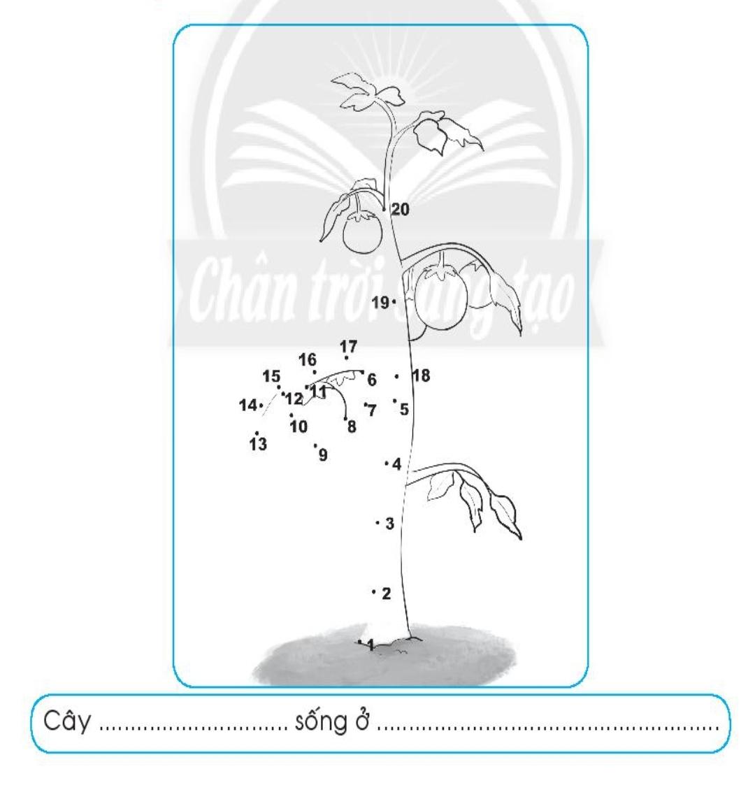 Nối các điểm theo thứ tự và tô màu để được bức hình hoàn chỉnh. Viết vào chỗ (…) tên cây và môi trường sống của cây đó.