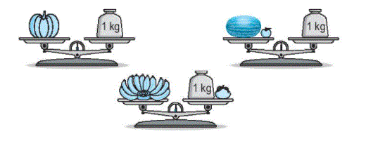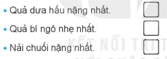 a) Quả bí ngô nặng bằng 1 kg; quả dưa hấu nhẹ hơn 1 kg; nải chuối nặng hơn 1 kg.