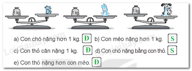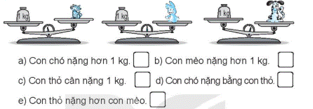 a) Viết “nặng hơn”, “nặng bằng” hoặc “nhẹ hơn” thích hợp vào chỗ chấm.