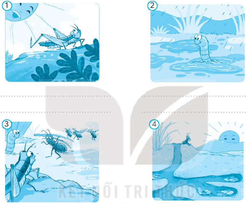 - Tranh 1: Châu chấu chìa lưng ra phơi nắng.