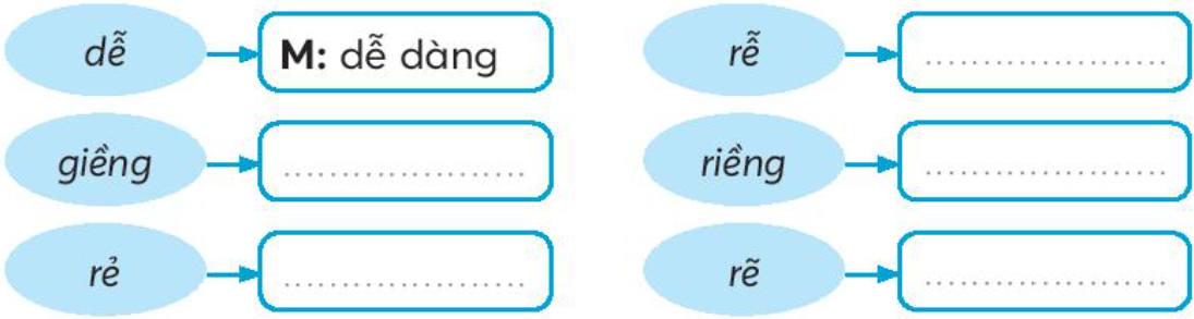 Tìm tiếng có thể ghép với mỗi tiếng dưới đây để tạo thành từ ngữ.