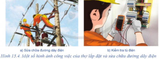 Thợ lắp đặt và sửa chữa đường dây điện ở Hình 15.4 đang thực hiện những công việc gì?